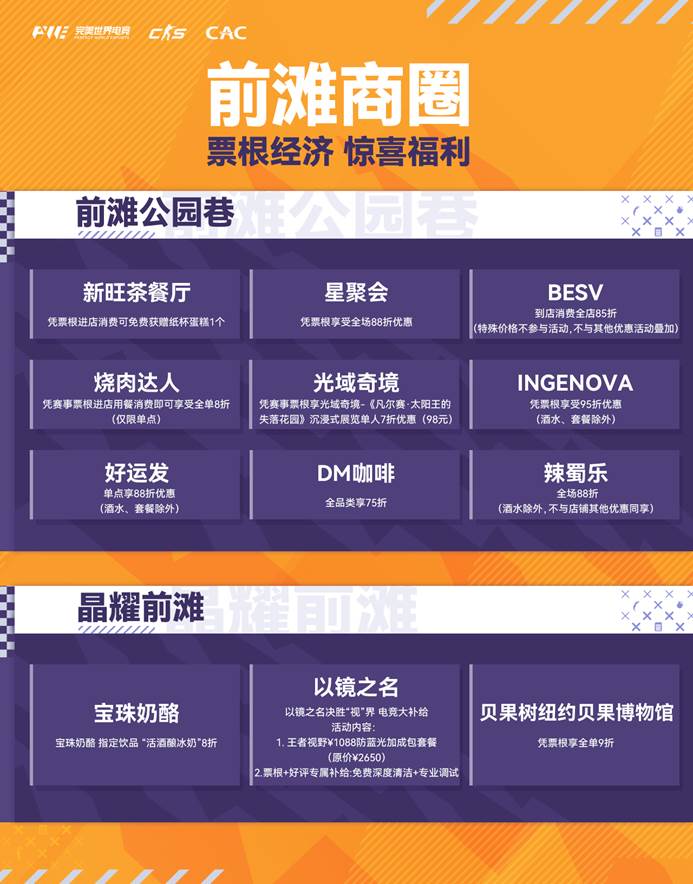 - 世博天地 :戶外大螢幕CAC同步直播 + 票根經濟享優惠 + CAC氛圍打造