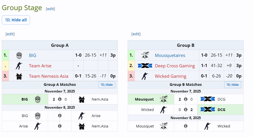 而他們已經完成了以1勝1敗完成Chennai Esports Global Championship 2025小組賽,先不敵法國代表Mousquetaires再淨勝地主隊伍Wicked Gaming,目前等待今日最後一輪賽果才能決定出線資格,他們需要寄望Wicked Gaming以艱難的戰況擊敗法國隊才能以較坐得失回合數來取得首名出線決賽,如法國隊兩戰全勝,DCG則會轉戰季軍戰。