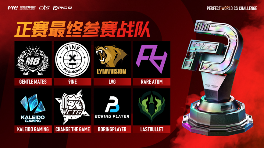 他們分別是歐洲賽區的兩支戰隊:9INE與Gentle Mates,中國賽區的兩支戰隊:LVG與RA,以及四支封閉預選賽出線隊伍:Kaleido Gaming,Change The Game,BORING PLAYER以及Last Bullet。