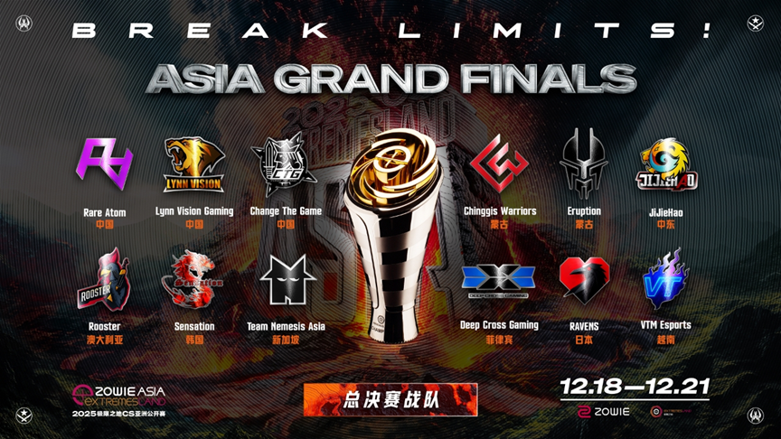 為了給更多亞洲選手登上國際舞台的機會,2025「極限之地」CS亞洲公開賽延續採用多賽區全公開預選的方式進行,設有中國、蒙古、新馬泰、日本、韓國、中東、越南、菲律賓以及大洋洲9大賽區,共12支戰隊晉級亞洲總決賽 。包括LVG、RA、CTG等來自9個國家或地區的12支隊伍將於2025年12月18日-21日齊聚中國上海,爭奪最後的2025極限之地亞洲總冠軍以及15萬美元總獎金!