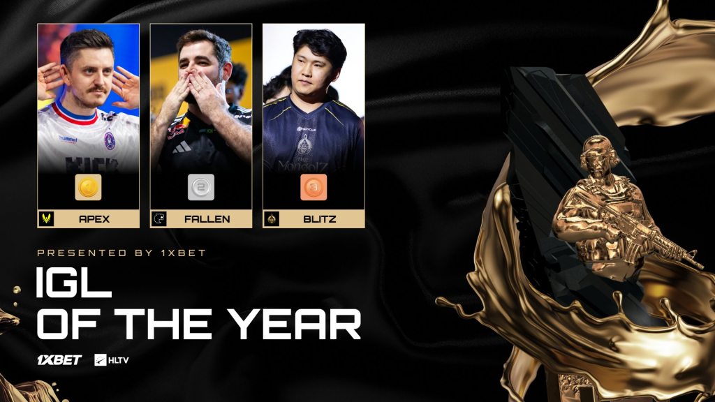 年度最佳指揮頒發給了Team Vitality的apEX,他用個人生涯證明了由突破手轉型指揮的可能性,也在近兩年裡將Team Vitality推向世界最佳戰隊的位置,今年幫助團隊贏下了兩座Major冠軍,被認為是史上最佳的指揮選手之一。另外第二名是巴西的名宿FalleN,他以34歲的「高齡」帶領FURIA創造出下半年的巴西風暴;第三名則是蒙古選手blitZ,今年The MongolZ在奧斯汀Major打進總決賽,也在EWC電競世界盃封王,這點blitZ的指揮貢獻巨大。