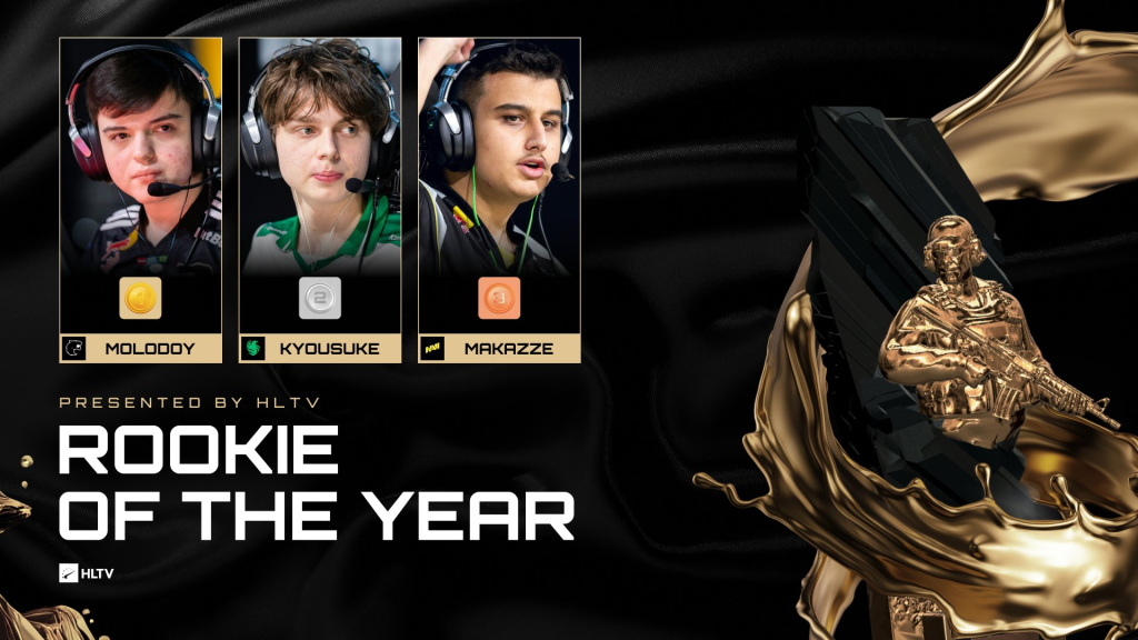 年度最佳新秀頒發給了molodoy,他是今年FURIA得以成功的關鍵之一,以大膽的狙擊風格為隊伍創造了很好的機會,也被認為是未來最佳狙擊手的潛力人選。第二名與第三名分別頒發給了Team Falcons的kyousuke和NAVI的makazze。