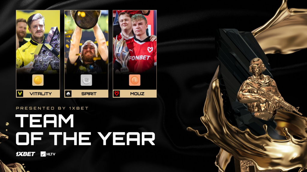 年度最佳戰隊給到Team Vitality,他們今年的冠軍數量遙遙領先於其他隊伍,頒發給他們實至名歸。第二名則是給到Team Spirit,他們贏下了兩季的BLAST賞金賽與IEM科隆站。第三名頒發給MOUZ,雖然僅有PGL克盧日-納波卡冠軍,但是MOUZ幾乎在所有比賽都穩定打進季後賽甚至四強。