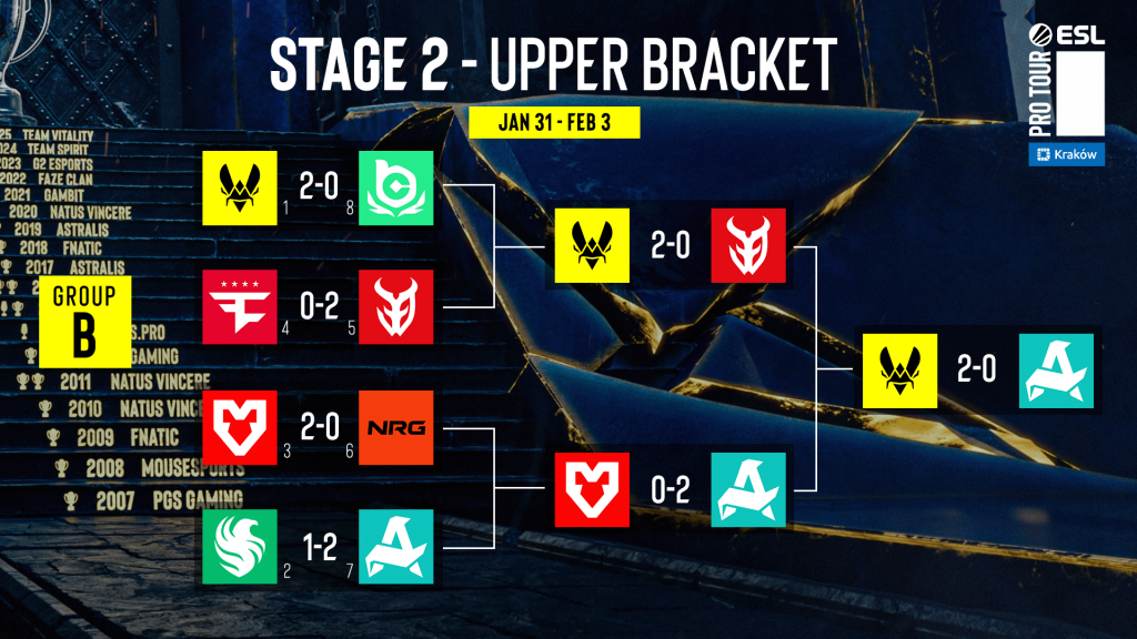 在經過四天的分組賽事後,Team Vitality和Team Spirit分別在小組賽中取的冠軍,將直接保送至季後賽四強。Team Vitality在三場Bo3中一圖未失,以全勝之姿晉級,展現了2025年最佳戰隊的強大實力。Team Spirit在donk的全力發揮下,也僅僅在與G2 Esports的對戰中丟失一張Overpass,順利打進了季後賽。