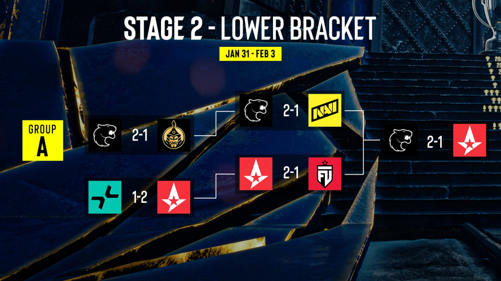 而另外四支晉級隊伍則是G2 Esports、FURIA、Aurora、MOUZ,其中FURIA的晉級可以說是最有驚無險,他們在分組賽首輪就意外敗給了FUT Esports掉進敗部,隨著擊敗The MongolZ、NAVI、Astralis等隊伍後,他們才進到了季後賽的賽程當中。