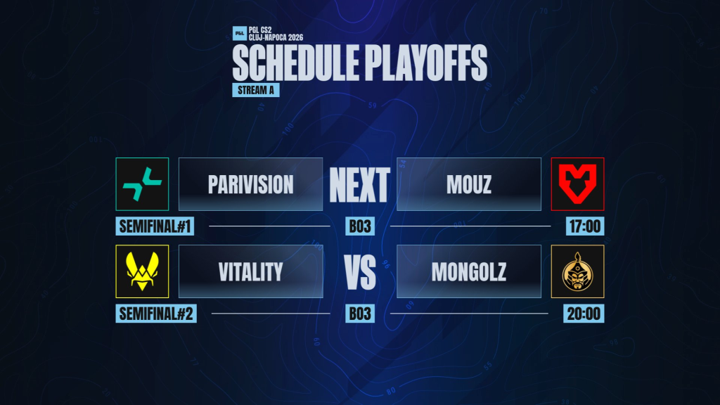PGL克盧日-納波卡四強賽將在本日台港澳時間晚上11時開賽,分別是MOUZ對上PARIVISION與Team Vitality對上The MongolZ。
