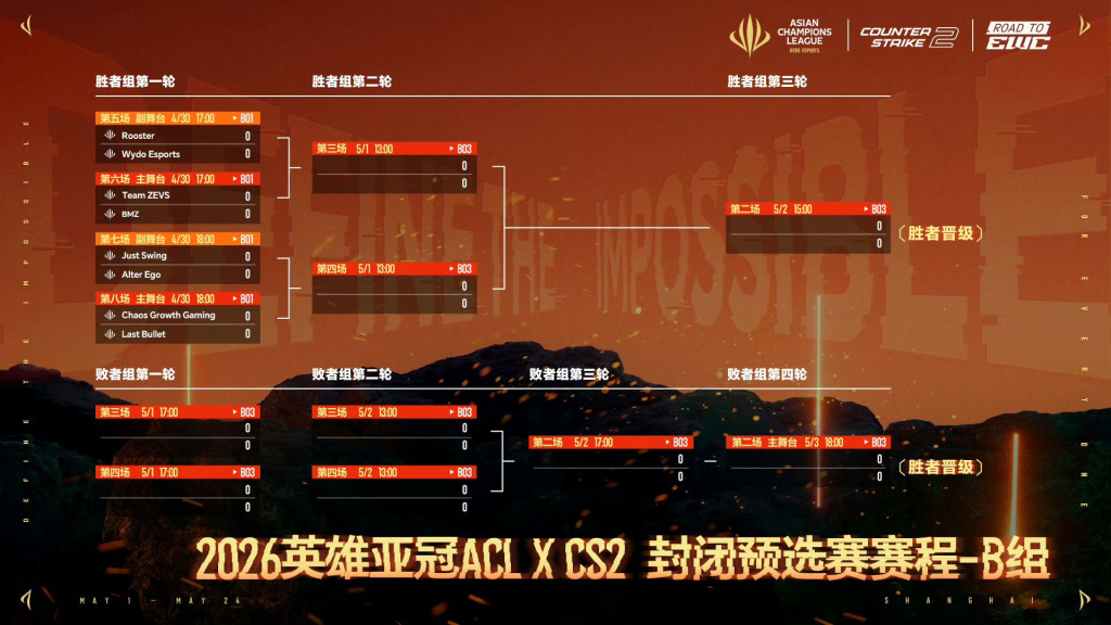 由Hero Esports主辦的2026 英雄亞冠ACL CS2 賽事,較早前完成了亞洲各地區預選賽階段後,將於下週四在上海進行第二階段的競逐,屆時16支參賽隊伍將會在五一假期前夕上演連場激鬥爭奪四個英雄亞冠ACL正賽名額。