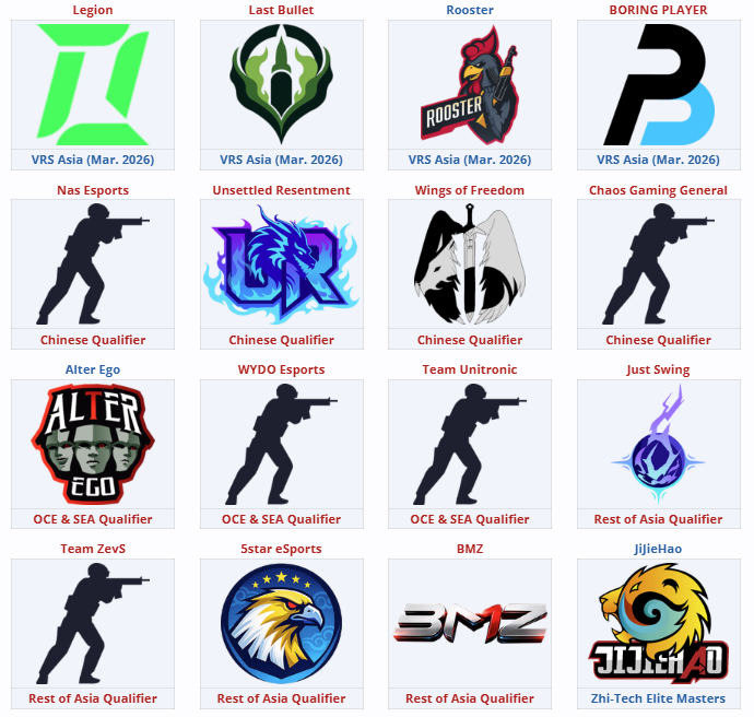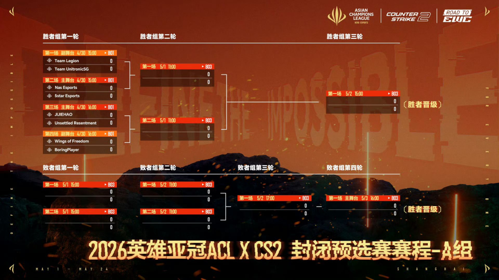 - 1st-2nd. 2026 英雄亞冠ACL CS2正賽名額